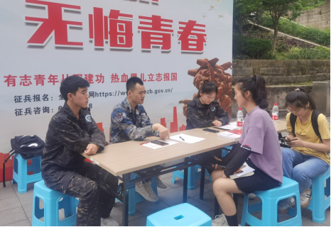 为加强征兵政策宣传,做好2022年秋季大学生应征入伍工作,由beat365在线唯一官网党委武装部主办,国防教育协会承办的2022年秋季征兵宣传活动于5月25日至27在南岸校区、兰花湖片区、江北校区顺利开展。