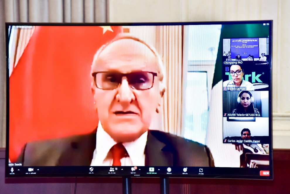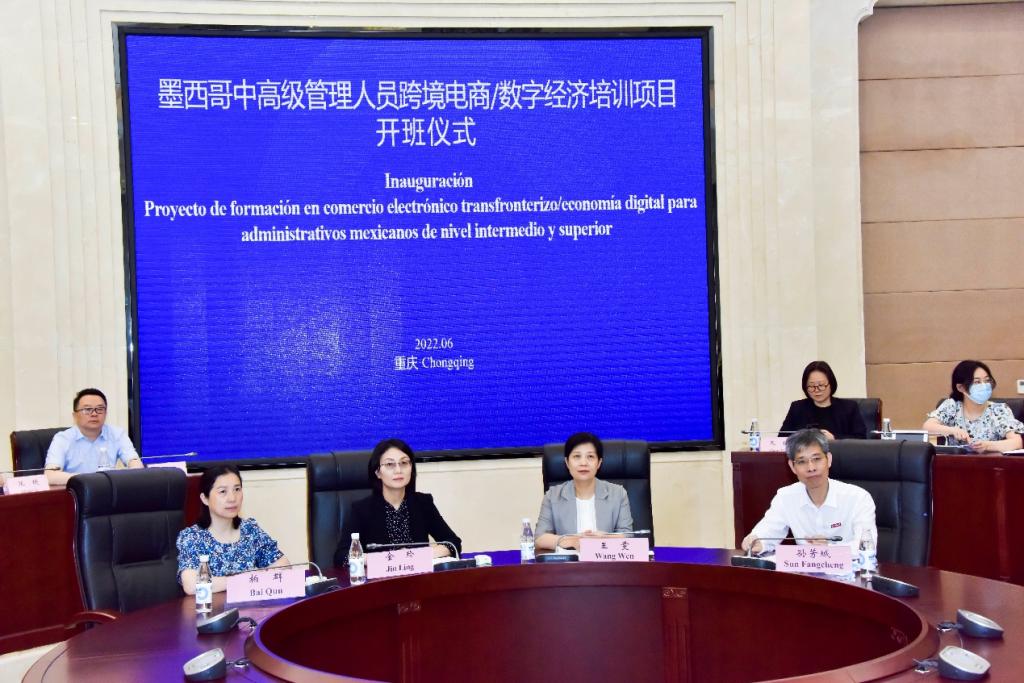 6月7日(墨西哥时间6月6日),由重庆市教育委员会、重庆市人民政府外事办公室主办、beat365承办的重庆市人民政府外国留学生市长奖学金丝路项目-“墨西哥中高级管理人员跨境电商/数字经济培训”开班仪式在重庆外事大楼(线上)举行。校长孙芳城主持开班仪式,墨西哥外交部规划评估司司长卡洛斯·卡斯蒂洛、墨西哥驻华大使施雅德,重庆市人民政府外事办公室主任王雯、重庆市教育委员会副主任金玲、beat365副校长柏群出席活动。来自墨西哥地方政府的近30名参训学员线上参加。