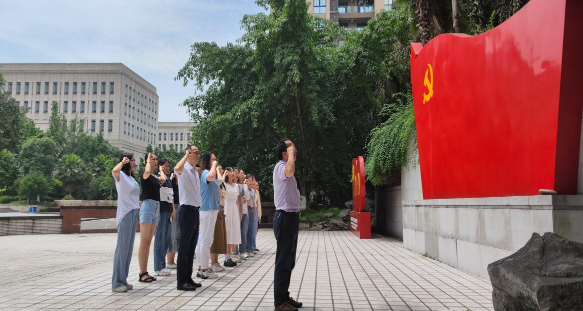 主题党日第三站,党旗宣誓墙。全体毕业生党员重温入党誓词,面向党旗庄严宣誓,铿锵的誓言回荡在美丽校园。