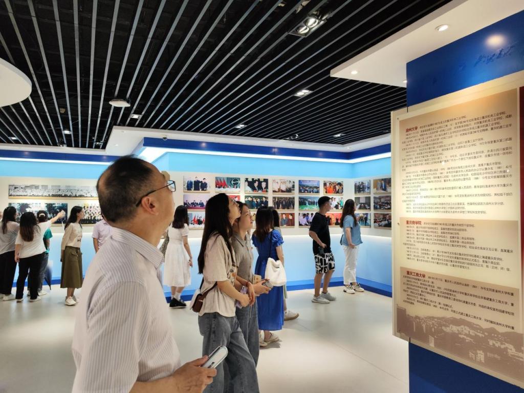 主题党日第二站,校史馆。升级改造后的校史馆焕然一新,信息化、科技感、互动性让党员们非常兴奋,大家在校史馆里移步换景,通过一张张照片、一段段文字、一件件实物、一个个地名和姓名,详细了解beat365在线唯一官网70年来的发展历程。在参观结束时,邓德敏为全体党员现场上了一堂微党课。他说,今天让大家来参观校史馆,就是让大家了解学校70的发展历程中,有艰辛、有汗水、有泪水;有成就、有鲜花、有掌声;这些都充分见证了一代一代重工商大人立德树人的初心使命,见证了一代一代重工商大人砥砺奋进的责任担当。同学们即将离开学校,大家要从学校的发展历程中汲取前行的力量,牢记使命,肩负责任,勇于担当,踔厉奋发。