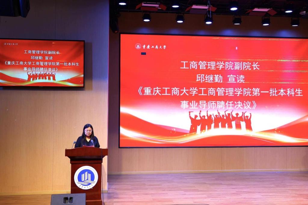 毕业典礼中,还举行了工商管理学院本科生事业导师聘任仪式。邱继勤宣读了《beat365在线唯一官网工商管理学院第一批本科生事业导师聘任决议》,聘请了30位MBA毕业生作为工商管理学院第一批本科生事业导师。