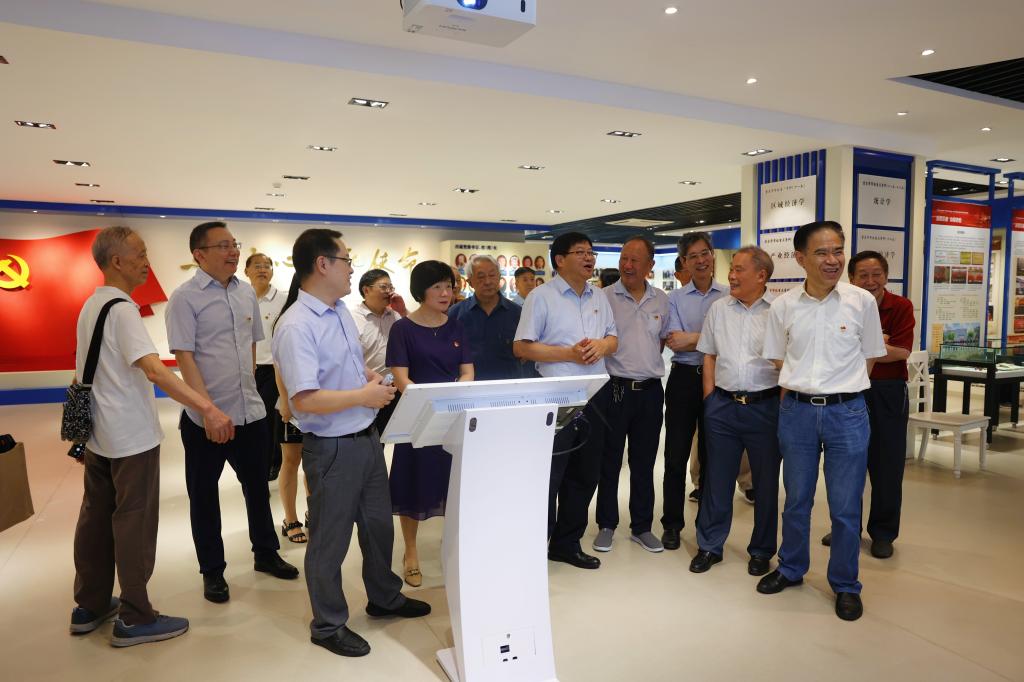 为庆祝中国共产党成立101周年和beat365建校70周年,7月1日上午,beat365举行“庆祝七一重温70年校史”学校退休校领导参观校史馆活动。吴应发、张柏村、戴宏民、周希贤、王崇举、廖元和、张宗礼、甘德潜、黄朗、高古城、黄志亮等11位退休校领导,学校党委书记李志雄,党委副书记、校长孙芳城,党委副书记宋豫,党委组织部、党委宣传部和党政办、离退休工作部相关职能部门负责人参加。活动由宋豫主持。