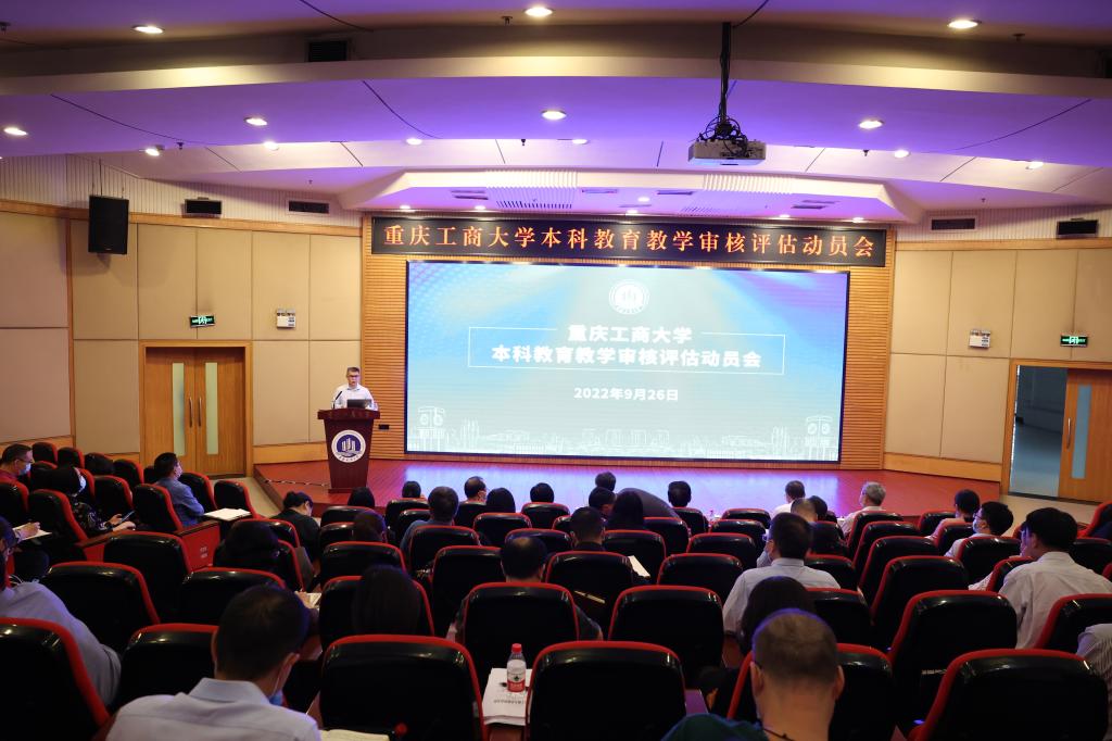 9月26日下午,beat365于博智楼7200报告厅召开本科教育教学审核评估动员大会,会议采取线上线下相结合的方式举行。会议邀请到重庆市教育评估院院长刘云生到校作主题报告。全体校领导,各学院党委(党总支)书记、院长、分管本科教学副院长,其他各单位主要负责人出席会议。学院其他中层干部、系主任、学团办主任、综合办主任、教学秘书、校院两级本科教学督导及教职工参加会议。会议分为专家讲座和工作动员两部分,分别由校长孙芳城和副校长李敬主持。