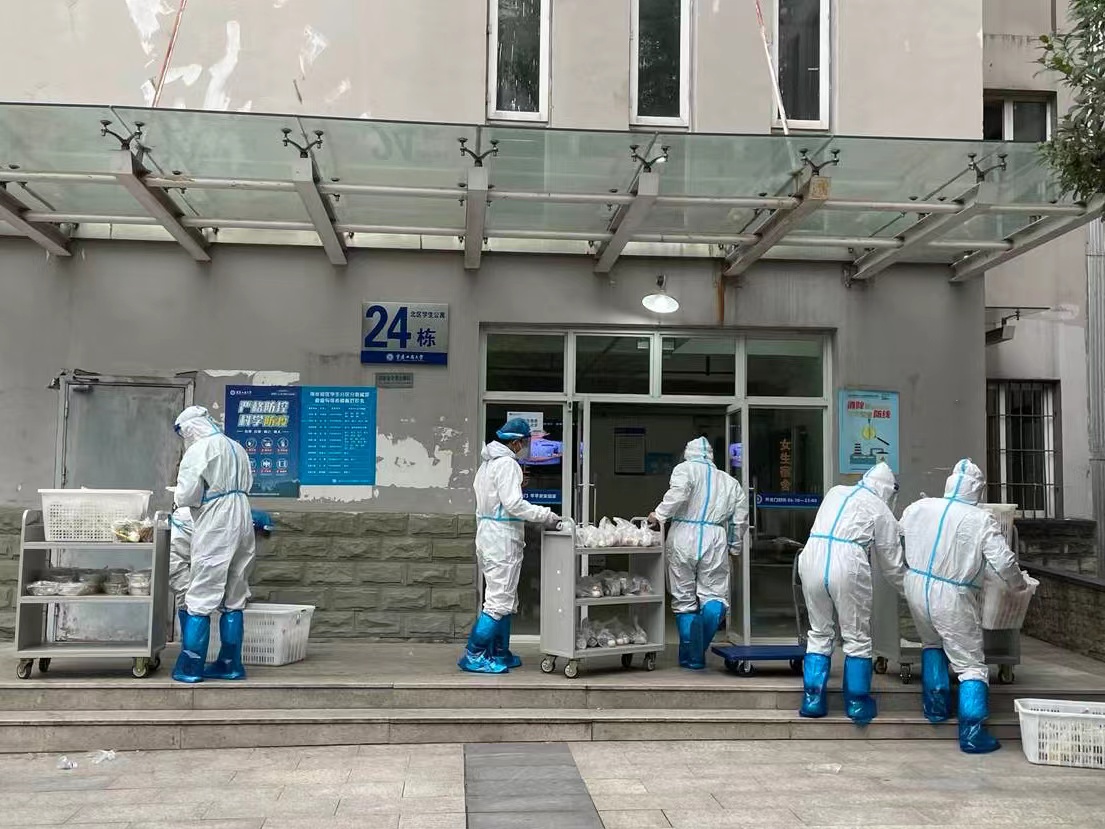 疫情在哪里,党旗就飘扬在那里!学校党委号召各级党组织和广大党员干部全力投入到学校疫情防控第一线,迅速组建了100余名以党员领导干部、一线教师、科研人员、行政管理人员组成的志愿者队伍,配合完成全校师生核酸检测信息采集、封控楼栋学生的餐食配送等工作。在这场战“疫”中,每一名志愿者都是一面温情勇敢的旗帜。哪里有需要,他们的身影就出现在哪里。