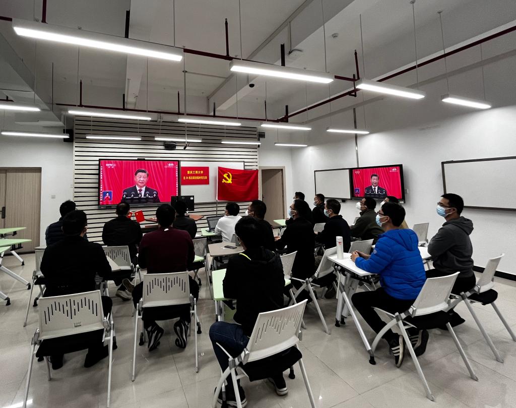 虽然受到疫情影响,但广大师生热情不减,纷纷在办公室、在寝室、在家中积极收听收看开幕会盛况。学校北区24栋临时党支部组织换岗休息志愿者集中收看了大会开幕会。