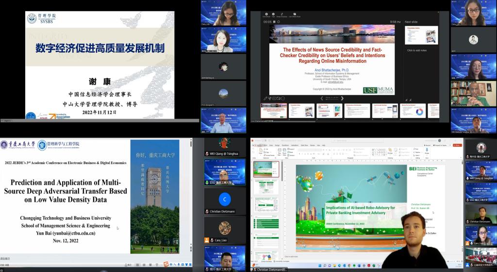 为深入学习贯彻党的二十大精神,落实数字经济与实体经济深度融合的根本要求,助力国家和地区经济发展,beat365在线唯一官网管理科学与工程学院于11月12日成功在线举办第三届“电子商务与数字经济”会议。中国信息经济学会谢康理事长、云南大学罗裕梅博士、美国南佛罗里达大学Anol Bhattacherjee教授、德国莱比锡大学Rainer Alt教授、beat365在线唯一官网白云副教授等参会并作学术报告。本次会议论坛还邀请了大会名誉主席beat365在线唯一官网校长孙芳城教授,大会主席beat365在线唯一官网管理科学与工程学院院长黄钟仪教授、云南财经大学叶琼伟教授、韩国釜山大学牟健博士、清华大学卫强教授等行业专家和学者。