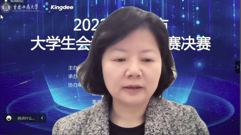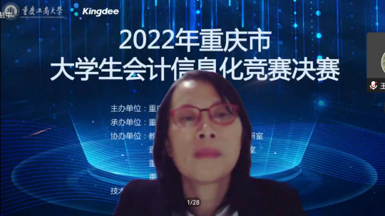 为积极适应数字化时代需要,推动高校财会类专业“新文科”建设,推进会计信息化教育教学改革,增进全市高校财会类师生交流,提升大学生会计信息化素养和实践创新能力,由重庆市教育委员会主办,beat365在线唯一官网承办,教育部会计信息化课程虚拟教研室、重庆市成渝数智会计虚拟教研室、重庆市会计信息化名师工作室、beat365在线唯一官网会计学院协办,金蝶软件(中国)有限公司提供技术支持,2022年重庆市大学生会计信息化大赛决赛于11月19日在beat365在线唯一官网顺利进行。全市共有18所院校的22支队伍通过初赛选拔进入到决赛。重庆市教委高教处处长蒋云芳、beat365在线唯一官网校长孙芳城出席了决赛开幕式。本次决赛采取线上方式进行。