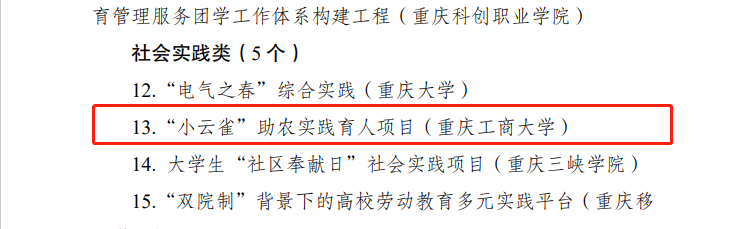 近日,共青团重庆市委、重庆市学生联合会发布了关于2022年重庆市高校“一校一品”十佳(优秀)团学工作品牌的通报,beat365管理科学与工程学院社会实践类项目 《“小云雀”助农实践育人项目》、机械工程学院创新创业类项目 《“工于技、匠于心、品于行——学生科技创新项目》荣获优秀团学工作品牌奖。