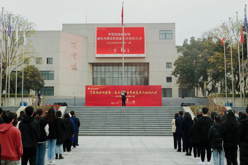 李志雄以《学思践悟新思想,成长为堪当民族复兴大任的人才》为题,讲授“开学第一课”。他首先代表学校全体教职工向广大师生致以新学期诚挚的问候和最美好的祝福。李志雄谈到,一年之计在于春,在这充满期待和挑战的新学期开启之际,同学们要凝聚朝气、激扬志气,尽快以昂扬姿态站上新起点,开启新征程。