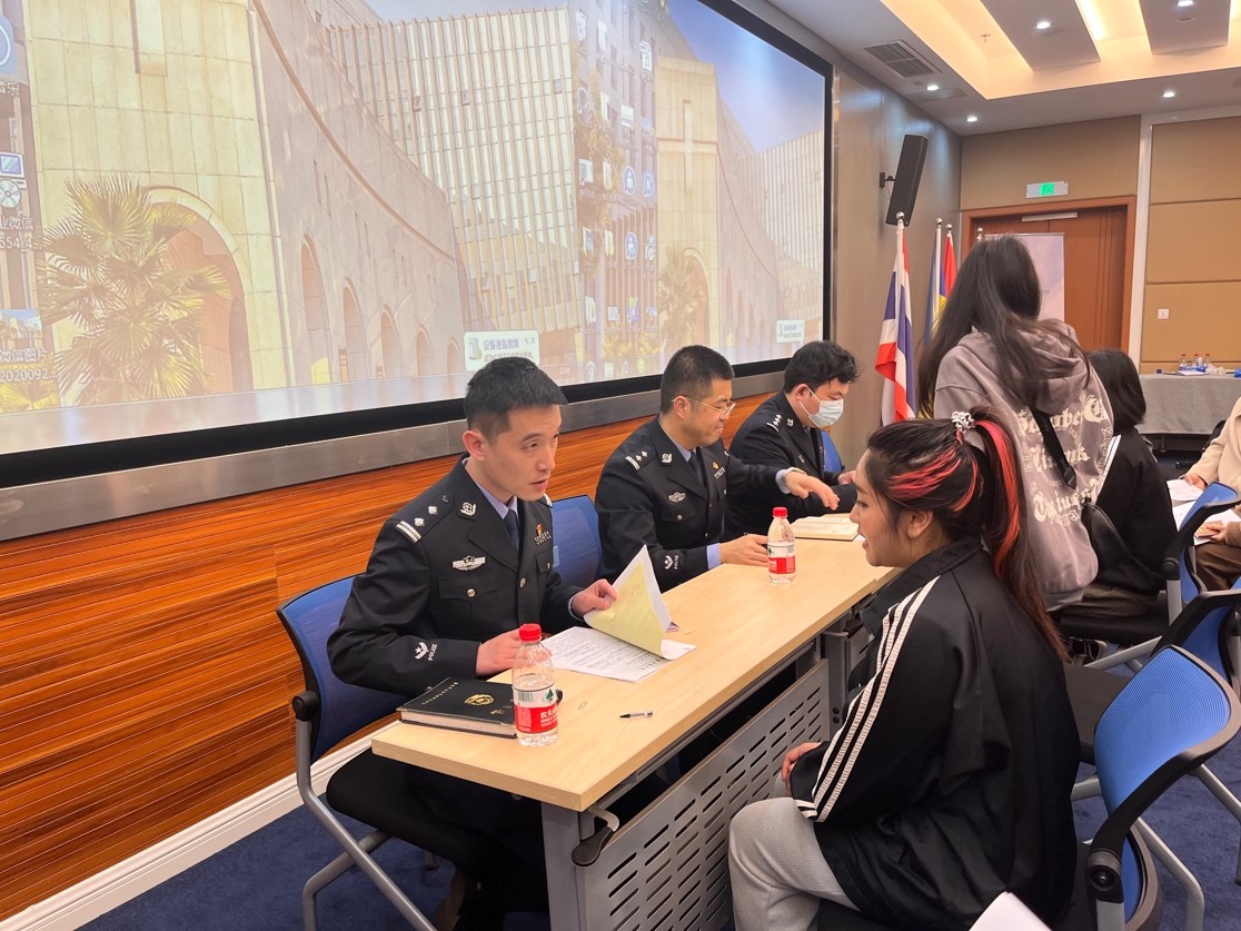 3月10日,beat365留学生居留许可面签工作暨法制宣讲会在图书馆智慧教室顺利举行,重庆市公安局出入境管理局、南岸区公安分局出入境管理支队民警一行来校为本学期返校的留学生进行居留许可集体面签,并对留学生进行法制宣讲。beat365留学生院领导和相关工作人员参加了此次工作会。