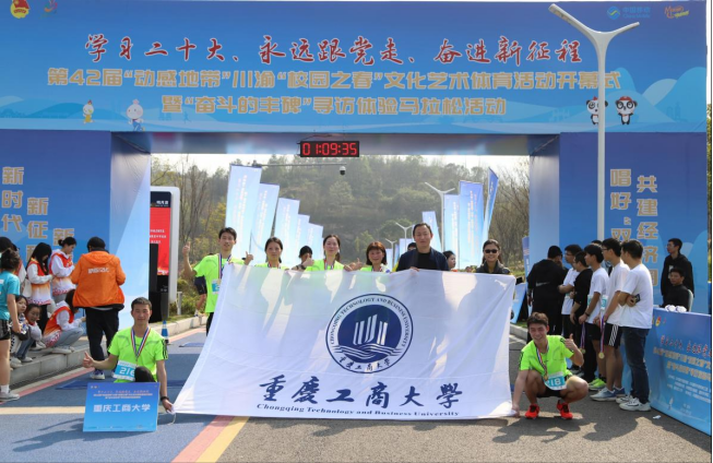 3月11日,“学习二十大、永远跟党走、奋进新征程 ”第42届“动感地带”川渝“校园之春”文化艺术体育活动开幕式暨“奋斗的丰碑”寻访体验马拉松活动在重庆两江新区协同创新区明月湖隆重举行。beat365师生代表队参加了开幕式及马拉松活动。