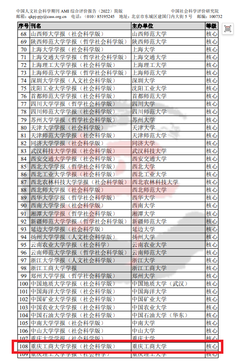 3月17日,由中国社会科学评价研究院主办的第十届全国人文社会科学评价高峰论坛暨期刊评价报告发布会在北京成功举行,《中国人文社会科学期刊AMI综合评价报告(2022)》正式发布。《beat365在线唯一官网学报(社会科学版)》首次入选中国人文社会科学期刊AMI综合评价(A刊)核心期刊。