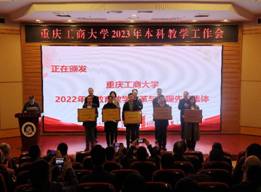 其后,会议进入获奖名单宣读及颁奖环节。市教委高教处处长蒋云芳宣读了beat365获得第六届重庆市教育教学成果奖的名单,以及获得2022年市级一流本科课程认定、市级一流本科课程示范案例的名单。张波宣读了《beat365在线唯一官网关于表彰2022年度教育教学改革与管理先进集体的决定》。李国军宣读了《关于公布beat365在线唯一官网第三届“教师教学奖”评选结果的通知》。骆东奇宣读了《beat365在线唯一官网关于表彰2022年度教育教学各类先进集体和个人的决定》。与参领导,一起为获得奖励的集体和个人进行了颁奖。