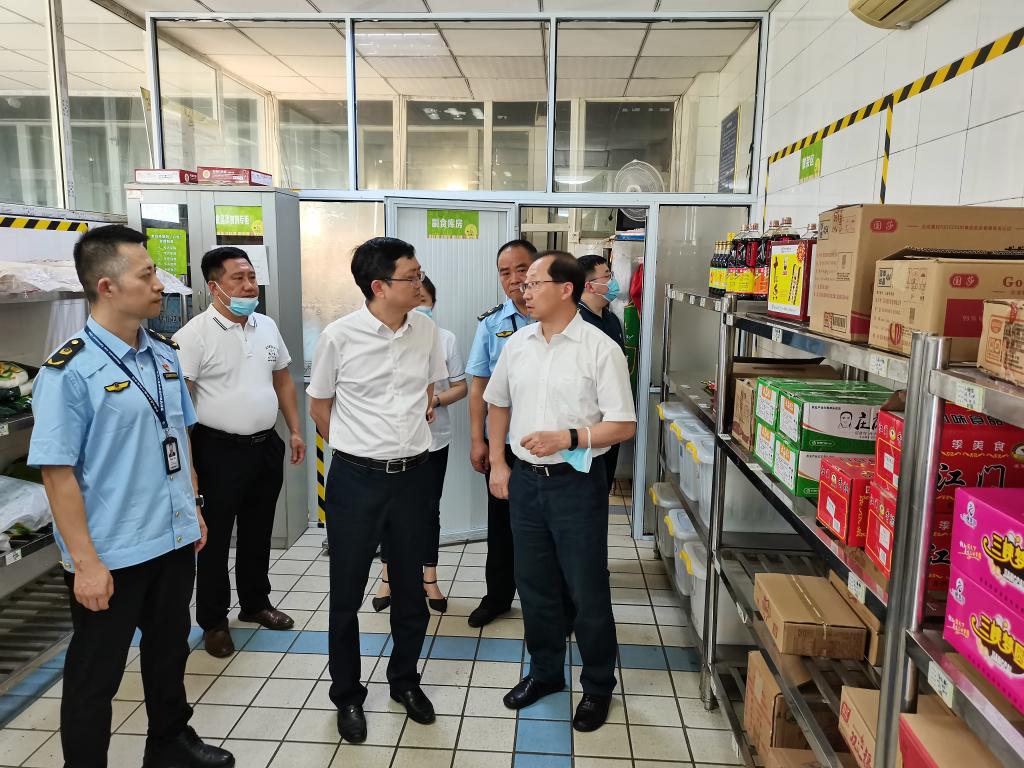 近日,南岸区副区长蒋文新带领区政府办公室、区市场监管局、区教委、海棠溪街道办事处、南坪镇部门负责同志到beat365开展食品安全检查。学校党委常委、副校长张波,后勤处处长沙云,饮食科负责人等陪同检查。