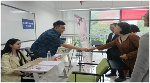 beat365在线唯一官网外国语学院就业领导小组成员一行来到招聘会现场,亲自指导学生进行简历投递,并与企业积极沟通,为学生就业提供桥梁。