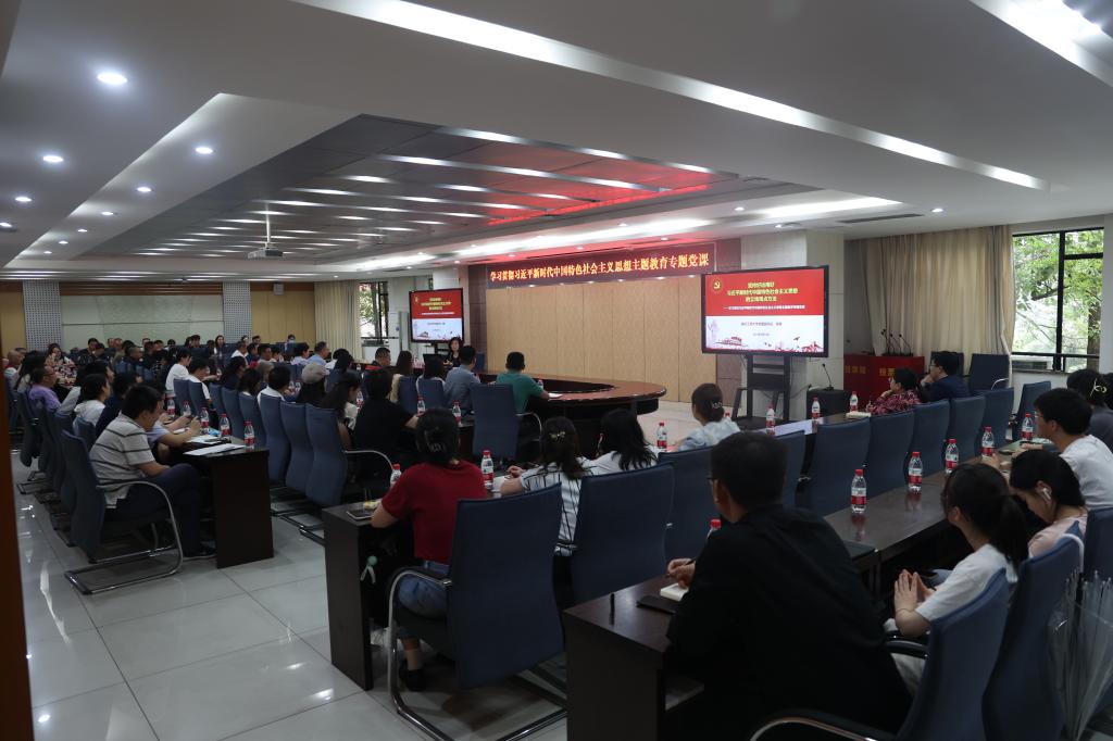 按照主题教育要求,5月19日下午,学校党委副书记宋豫在厚德楼2017会议室讲授学习贯彻习近平新时代中国特色社会主义思想主题教育专题党课。党委组织部(机关党委)、党委统战部、保卫部、离退休部、工会、会计学院、管理科学与工程学院、法学与社会学学院等9个分管(协管)联系单位的全体中干和科级干部,以及机关党委第三支部、第七支部全体党员,会计学院、管理科学与工程学院、法学与社会学学院全体教工支部书记、学生支部书记,教工党员和学生党员代表等,共计90余人参加会议。