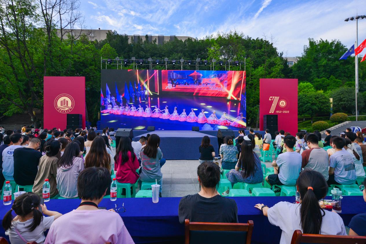 据悉,为了让更多师生、校友、离退休教职工和社会友人都能欣赏到精彩的文艺演出,学校于当天下午和晚上安排了两个场次的演出。晚上的演出在含弘广场设立分会场,同步播放剧场内演出。演出前,艺术学院、现代国际设计艺术学院师生在分会场表演了一场精彩的服装秀。同时,文艺演出在华龙网、新重庆、新华社现场云、央视频移动网等网络平台同步直播。