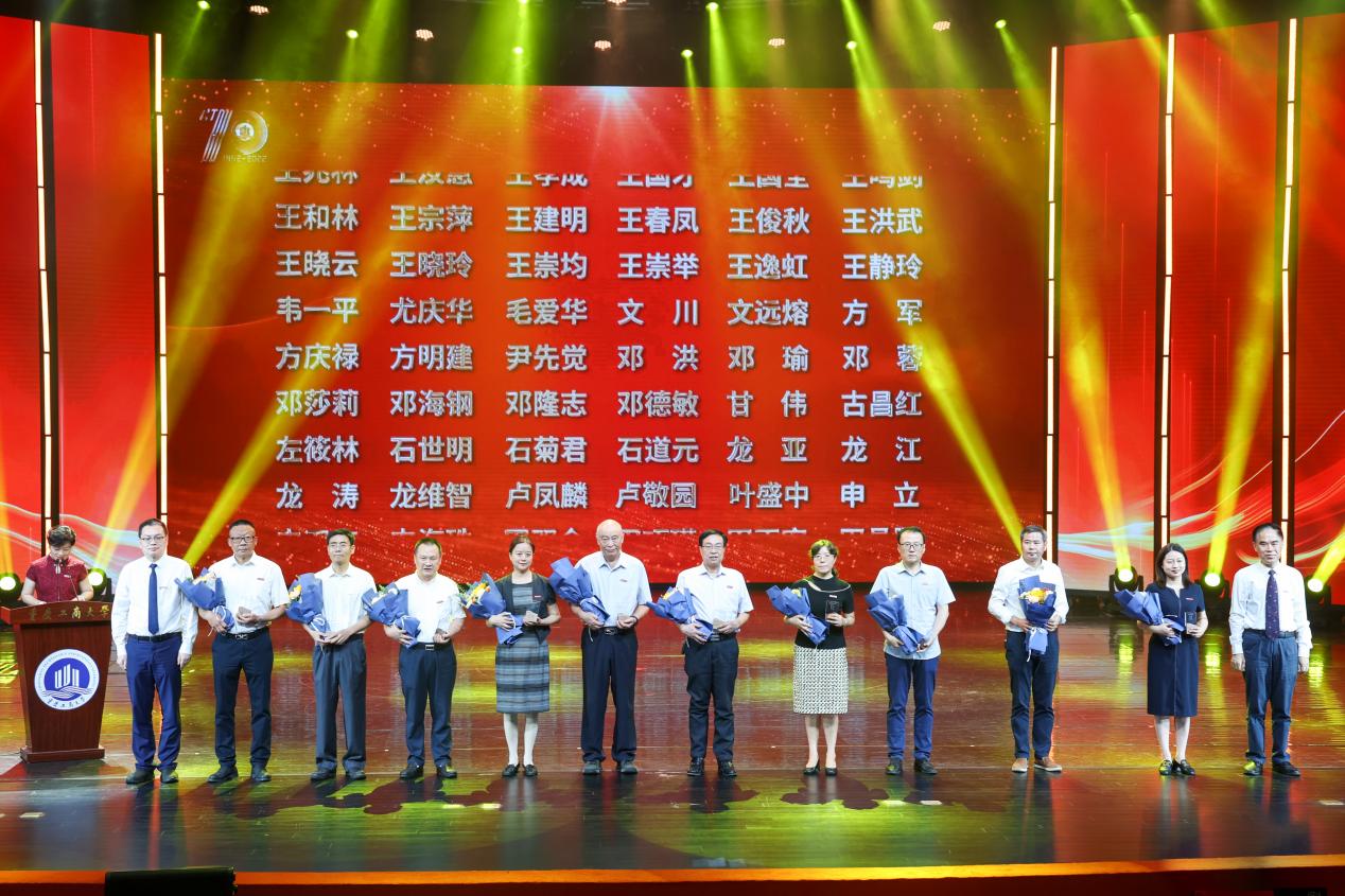 随后,校长温涛宣读了《关于发布beat365在线唯一官网建校70周年“荣誉·致敬”榜单的决定》。温涛指出,为更好展现学校70年办学成就,激励全校师生、校友进一步弘扬“含弘自强,经邦济民”的重工商大精神,汇聚改革发展磅礴力量,赓续立德树人初心使命,在庆祝建校70周年庆典之际,学校决定发布“beat365在线唯一官网建校70周年‘荣誉•致敬’榜单”。入选beat365在线唯一官网建校70周年“荣誉·致敬”榜单的教师、离退休教职工和校友,是学校70年办学历程中涌现出的先进典型。温涛希望全校师生以他们为榜样,继续保持一往无前、乘势而上的奋斗姿态,锚定学校第四次党代会确定的目标任务,凝心聚力,自信自强,守正创新,勇毅前行,为全面建设现代化高水平大学而团结奋斗,为在新时代新征程全面建设现代化新重庆而团结奋斗,为以中国式现代化全面推进中华民族伟大复兴而团结奋斗。