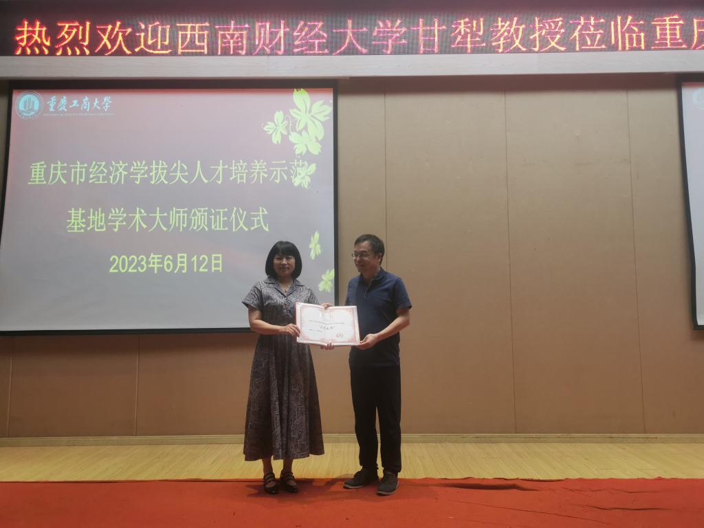 第二阶段,学校聘请甘犁教授为重庆市经济学拔尖人才培养示范基地“学术大师”,经济学院院长宋瑛为甘犁教授颁发聘书。宋瑛代表学校对甘犁教授加盟beat365在线唯一官网表示诚挚的欢迎,她表示,beat365经济学拔尖人才培养示范基地正在推进国内外学术大师“导师制”人才培养模式,通过学术大师言传身教,接触学术理论和思想文化研究前沿,加强对拔尖学生的精神感召、学术引领和人生指导,着力培养一批学科基础扎实、创新能力突出、国际视野宽广的经济学拔尖学子。