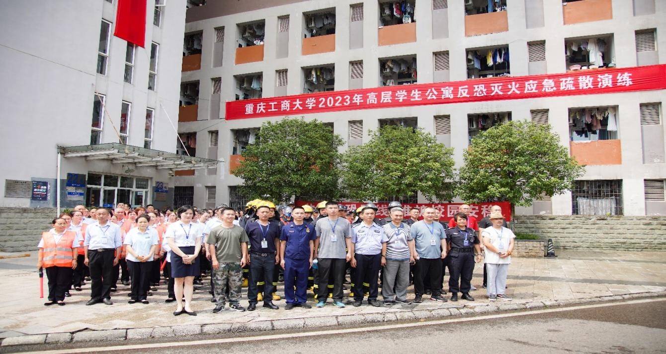 为深入学习贯彻习近平总书记关于安全工作的重要指示批示精神,落实主题教育“重实践”要求,提升学校反恐灭火应急疏散能力,7月10日下午,党委保卫部(保卫处)联合党委宣传部、党委学工部、后勤处以及相关物业公司在beat365新北区高层学生公寓开展了反恐灭火应急疏散演练。保卫干部、安保队员、物业和食堂员工、新北区高层学生公寓的学生、部分军训教官、南岸区二塘消防救援站救援人员共计900余人参加了演练。