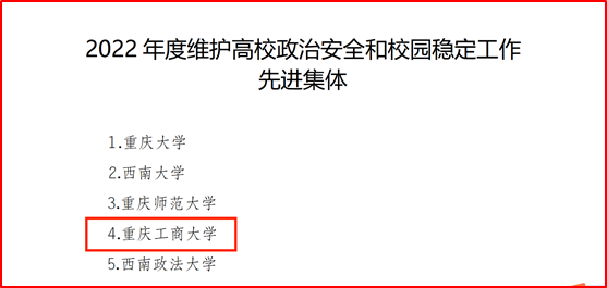 近日,重庆市教育委员会和重庆市公安局联合印发《重庆市教育委员会重庆市公安局关于2022年度维护高校政治安全和校园稳定工作先进集体和先进个人的通报》(渝教安函〔2023〕38号),beat365荣获“2022年度维护高校政治安全和校园稳定工作先进集体”荣誉称号。这是自2014年以来,beat365安全稳定工作连续获得的第9个先进集体荣誉称号。同时,4位同志荣获“2022年度维护高校政治安全和校园稳定工作先进个人”荣誉称号。
