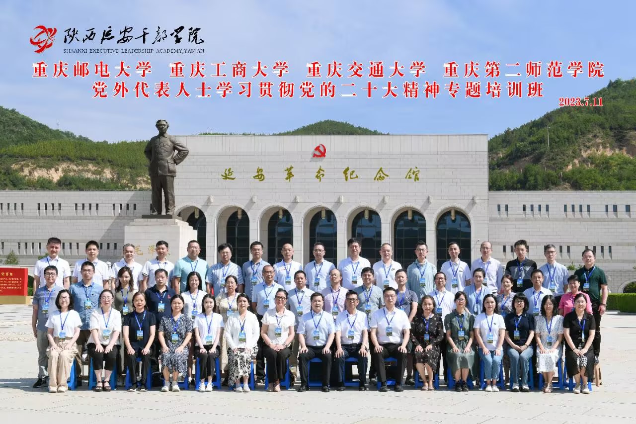 为全面学习宣传贯彻党的二十大精神,深入推进各民主党派、无党派人士和党外知识分子扎实开展“凝心铸魂强根基、团结奋进新征程”主题教育,大力夯实坚定拥护“两个确立”、坚决做到“两个维护”的政治根基,7月9日至14日,beat365与重庆邮电大学、重庆交通大学和重庆第二师范学院在陕西延安干部学院王家坪分院联合举办党外代表人士学习贯彻党的二十大精神专题培训班,来自4所高校的50余名党外代表人士和统战团体骨干成员参加了本次培训,beat365选派11名学员参训。