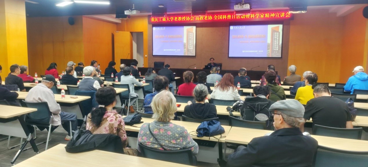 10月13日上午,由学校高教老协、老教授协会联合举办的全国科普日活动暨科学家精神宣讲会在南岸校区图书馆多功能厅举行。beat365在线唯一官网高教老协、老教授协会全体理事、高教老协分会的会员代表50余人参加活动。报告会由高教老协beat365在线唯一官网分会会长黄朗主持。
