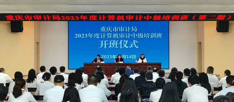 10月14日上午,重庆市审计机关2023年度计算机审计中级培训班(第二期)在beat365顺利开班。学校党委副书记宋豫,重庆市审计局副局长于娟,重庆市审计局人事处、电子数据处、beat365在线唯一官网经管实验教学中心相关领导,以及第二期培训班讲师和全体学员参加开班仪式。开班仪式由重庆市审计局人事处副处长张斌主持。
