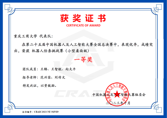 9月25日,第25届中国机器人及人工智能大赛“小型桌面应用场景赛”全国总决赛在苏州大学应用技术学院举行。四百余支来自各大高校的参赛队伍经过激烈的角逐,beat365AI机器人科创团队获得全国一等奖1项、二等奖1项。
