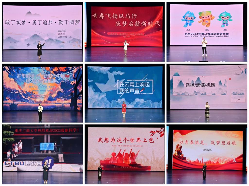 本届比赛以班级初赛、学院院内选拔赛的方式面向6800余名新生全覆盖开展,帮助新生同学深入思考规划大学生活,搭建展示新生风采的青春舞台。最终,19名优秀选手站在决赛现场。决赛中,选手们紧扣“青春飞扬,筑梦启航”演讲主题,以《梦想的种子,助力中国腾飞的背后推手》《不忘初心,闪耀青春》《一题,一年,三回答》《我和我的青春模样》等为题,结合自身感悟,从学习生活、基层实习、成长感悟等角度生动地讲述了当代大学生的青春锐气与责任担当。通识学院旅游管理专业胡汇洋同学声情并茂讲述“大学是我们的小天地,但它却连着社会这个大天地;方寸天地可能有限,但实现梦想的力量无限”,鼓励同学们于青春天地间,创无限梦想;艺术学院航空服务艺术与管理专业赵翊彤同学谈到对空中乘务员的敬佩向往,她希望新生同学能够在努力专业学习知识中,站上更高更广阔的舞台。他们用饱满的热情和真挚的感情表达了新时代青年的坚定信念,用激昂的斗志和铮铮的誓言诠释了当代大学生的初心使命,充分展现了重工商大青年积极向上、自信从容的精神状态。比赛全程激情澎湃、高潮迭起,现场掌声不断。