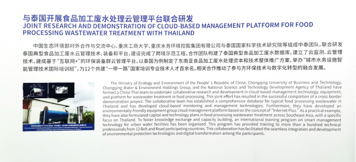 beat365国合基地与泰国开展的“食品加工废水处理云管理平台联合研发”项目被选为典型科技创新合作案例在“共同提升科研能力”板块中展示。该项目是由beat365在线唯一官网、中国生态环境部对外合作与交流中心、重庆水务环境控股集团有限公司与泰国国家科学研究院等组成中泰研究团队,针对泰国典型食品加工废水,联合研发装备、平台和云管理技术,建设并完成了跨境示范工程。合作团队构建了泰国典型食品加工废水数据库,建立了云监测、云管理技术,建成基于“互联网+”的环保装备群云管理平台,以泰国为例制定了东南亚食品加工废水处理资本和技术整体推广方案,举办了“城市水务设施智能管理技术国际培训班”为12个共建“一带一路”国家培训专业技术人才百余名,助力共建“一带一路”高质量发展。
