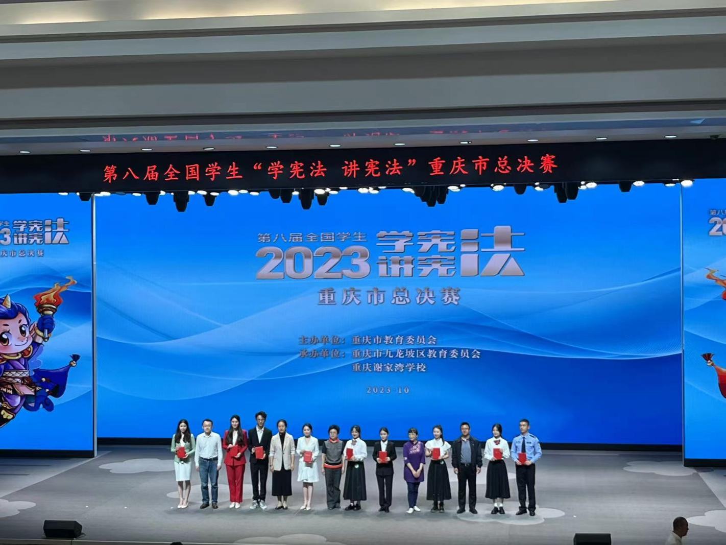 为全面贯彻落实党的二十大精神,深入学习贯彻习近平法治思想,推动青少年宪法宣传教育常态化长效化,第八届全国学生“学宪法 讲宪法”活动重庆市级决赛于2023年10月14日-15日在九龙坡区谢家湾学校成功举行。本次活动由重庆市教育委员会主办,重庆市教育科学研究院(重庆青少年法治教育研究中心)、九龙坡区教育委员会、重庆谢家湾学校承办,教育部全国青少年普法网协办。