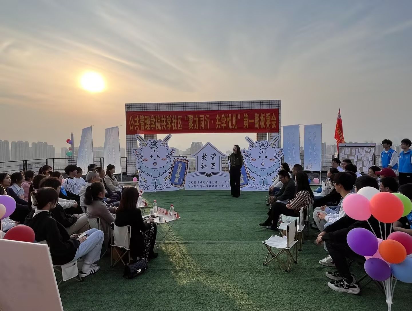 李国军为公共管理学院学生社区党支部、教工第二党支部赵伟工作室结对联建进行了授牌,他强调,学院要坚持以党建为统领,以社区功能型支部建设为抓手,建立学生党员网格化管理体系,深入开展党的工作和思想政治工作,将学生社区打造成为学生党团建前沿阵地。他充分肯定了共学社区板凳会的意义,表示活动形式新颖、特色鲜明,学生积极自主参与社区建设,师生“零距离”交流,让师生共学、生生共学、师生互助、生生互助有了新的平台。希望学院通过多维育人力量的过程性陪伴和伴随性指导,引导广大青年学生在学思践悟中焕发新活力、展现新气象,助力师生共同成长,让多元共生的教育环境落地生根。