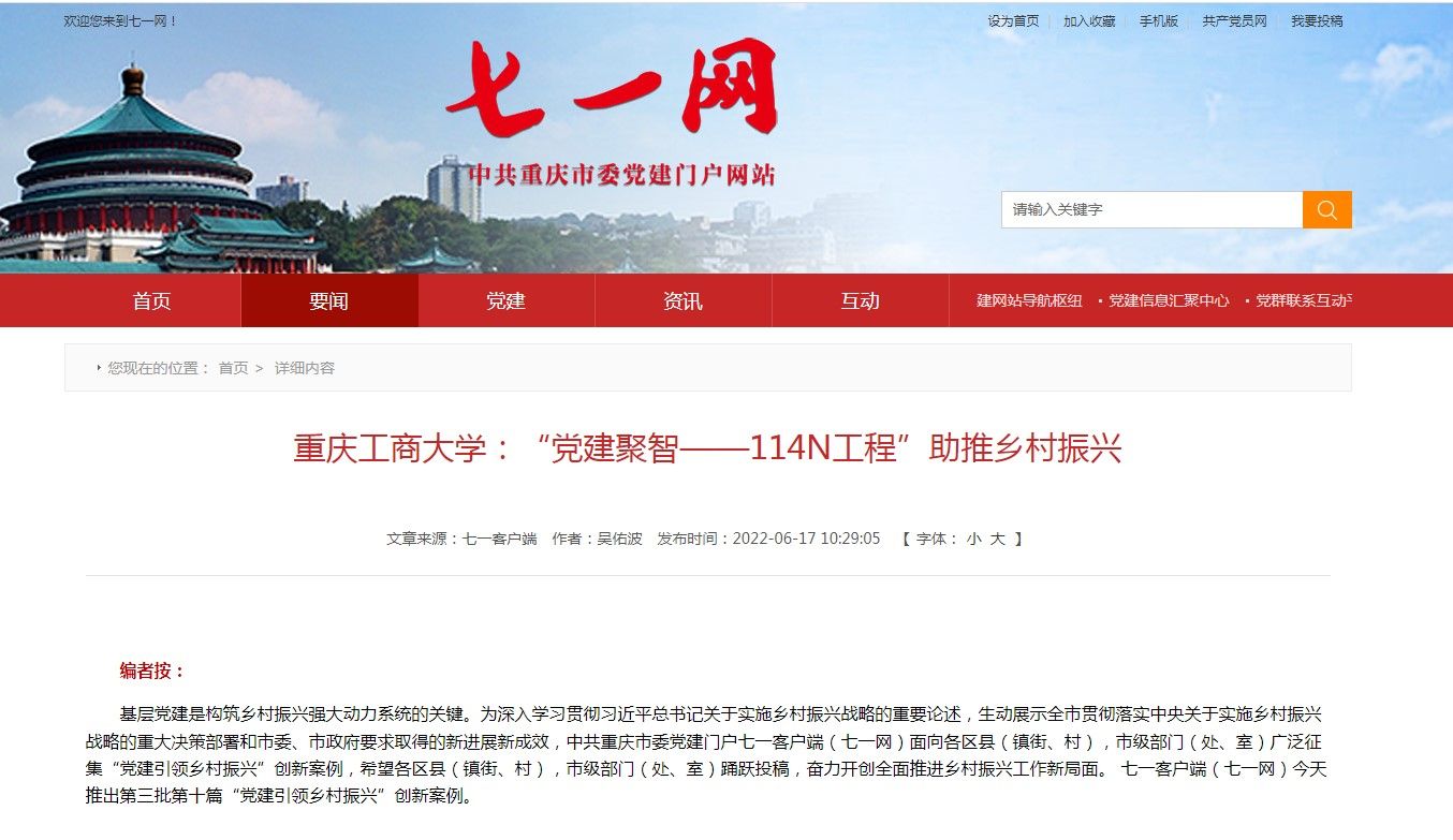 近日,市委教育工委公布了2022年度重庆市高校党建“十大新闻”评选结果,beat365党建新闻《beat365在线唯一官网:“党建聚智——114N工程”助推乡村振兴》成功入选。