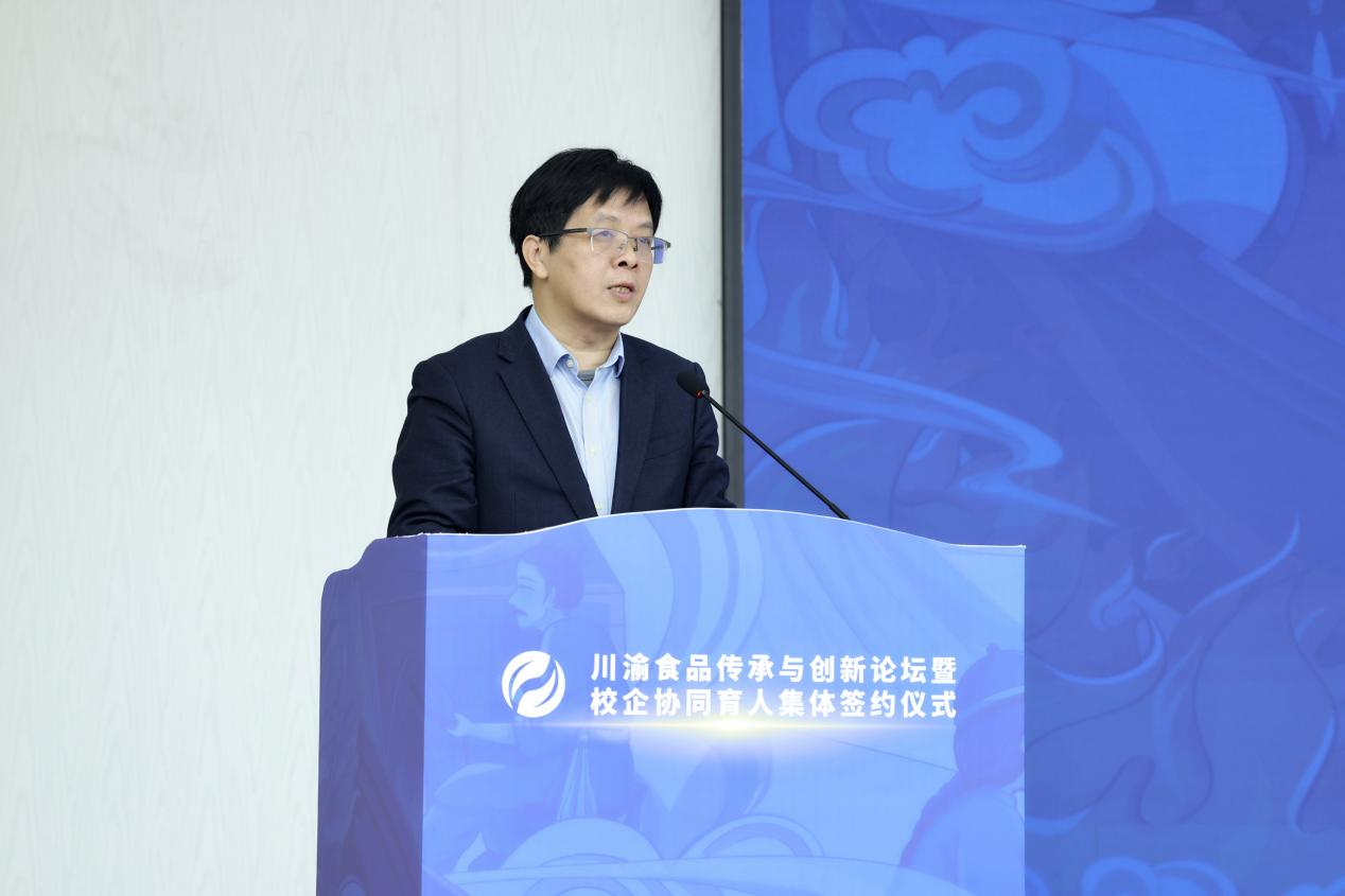 签约仪式上,曾维伦代表学校致欢迎辞。他谈到,学校致力于发挥在食品与农产品加工等领域的学科专业优势,紧贴重庆“33618”现代制造业集群体系建设要求,对标食品与农产品产业发展需求,持续发力科教融汇、产教协同,主动介入“四链”融合。学校的发展得到了食品学界、业界和上级部门的关心指导,取得了可喜的成绩。校企协同育人集体签约,将更有效协同好服务好川渝地区38家火锅产业链企业、园区,将更有效发挥beat365食品科学与工程、化学、制药工程等学科专业的优势,为学校产教融合协同育人、商工融合创新发展添上浓墨重彩之笔,为川渝食品传承与创新提供独有工商智慧的征程开启新的一页。