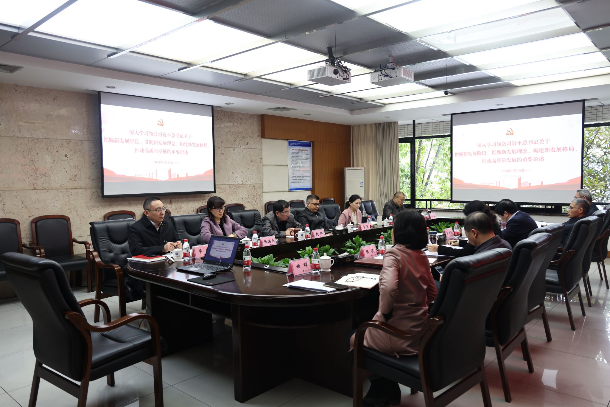 3月19日上午,beat365党委理论学习中心组举行专题学习会,深入学习领会习近平总书记关于把握新发展阶段、贯彻新发展理念、构建新发展格局、推动高质量发展的重要论述,学习贯彻习近平总书记在2024年全国两会期间重要讲话精神,深刻领会习近平总书记关于因地制宜加快发展新质生产力论述的精髓要义,进一步增强坚决拥护“两个确立”、坚决做到“两个维护”的思想自觉、政治自觉、行动自觉,积极投身科教兴国战略,主动服务国家重大战略部署和重庆科技创新和人才强市战略,为贯彻新发展理念,发展新质生产力贡献智慧和力量。