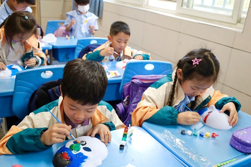 公开课上,非物质文化遗产研究会精心准备,聚焦川剧艺术特技之一——川剧变脸,设置科普小课堂和实践教学体验,让小学同学在特色课程中感受中国非物质文化遗产的魅力。活动伊始,研究会播放川剧变脸视频吸引同学们的注意,共同感受博大精深的川剧艺术。站点、踢腿、扇子一开一合、红脸一下变成白脸、扭头间拂帽甩带、白脸又变成黑脸......研究会成员细致讲解变脸步骤,科普川剧变脸的历史起源、类型、人物特点等内容,带领同学们深入理解川剧变脸这类中华传统文化的精神和内涵。在实践教学体验环节,研究会成员引导同学们阐述其对川剧变脸的见解,并指导同学们画下自己心中的川剧脸谱。一双双高举的小手,一支支神奇的画笔,一幅幅多彩的面具,beat365学生社团努力推动非物质文化遗产进校园、进课程、进头脑。