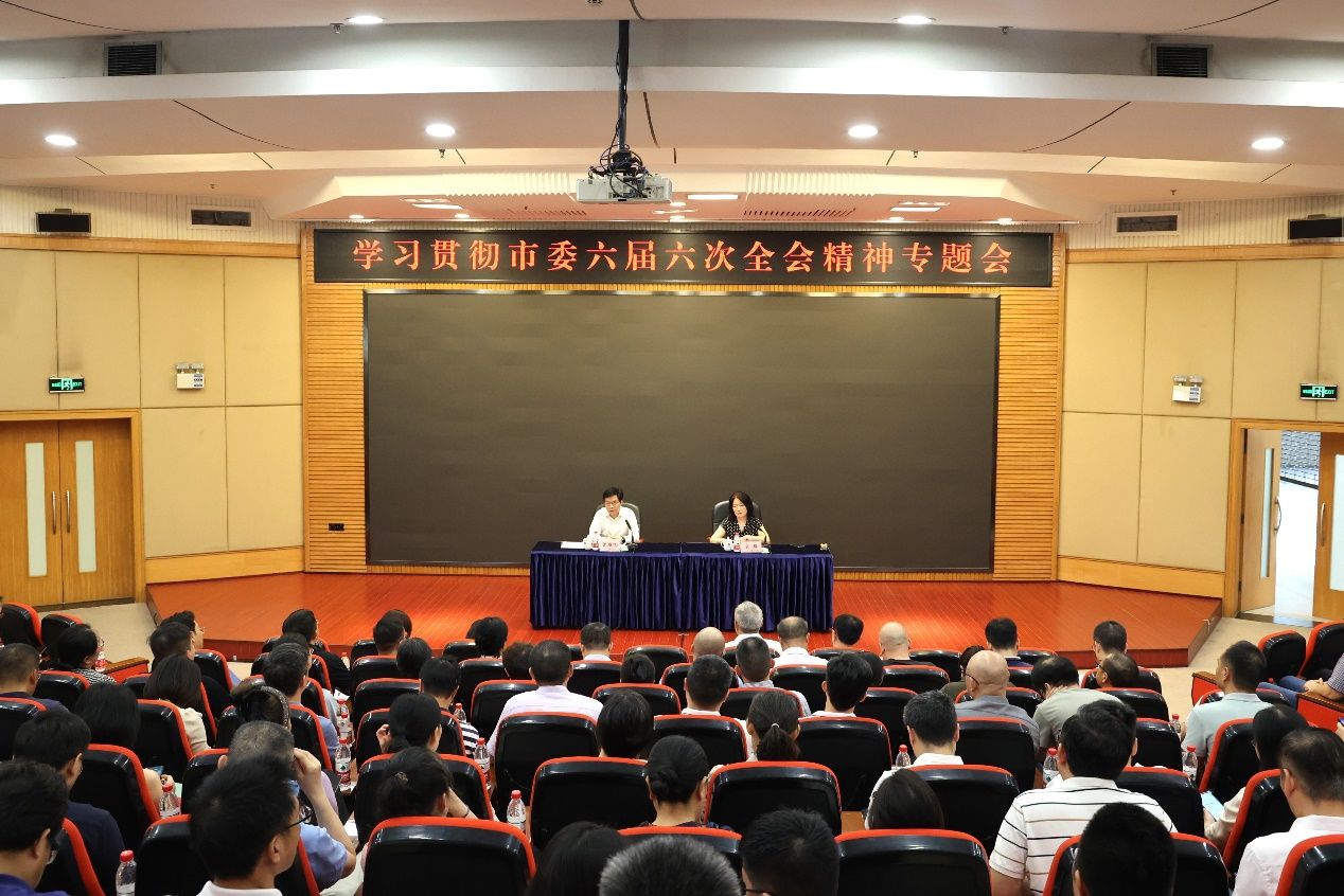 9月18日上午,beat365在博智楼7200报告厅召开传达学习贯彻市委六届六次全会精神专题会。学校党委书记曾维伦传达市委六届六次全会精神,学校党委副书记宋豫主持会议。全体在家校领导、全体中层干部和部分高级职称教师代表参加会议。
