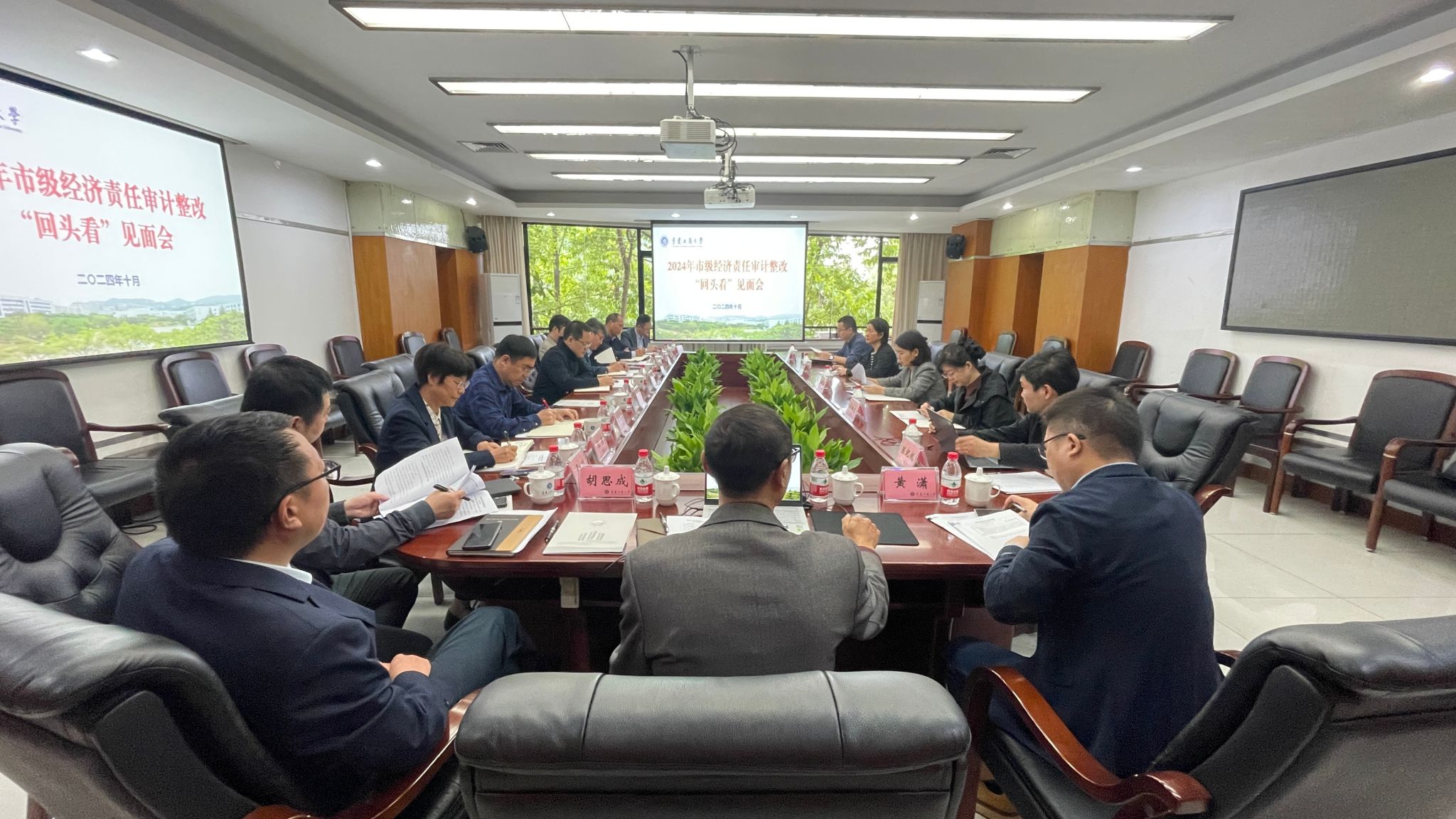 10月24日,重庆市经济责任审计工作联席会议办公室来beat365开展2023年校领导经责审计整改“回头看”。“回头看”工作组组长、市经责审计联席会办公室副主任田颖,工作组成员市人社局表彰奖励处三级调研员李瑞兰、市审计局三级调研员唐芳和一级主任科员陈纪帆、市财政局三级主任科员杨光,以及学校党政办、纪检监察室、组织部、人事处、教务处、科研处、后勤处、财务处、审计处、基建处、国际商学院、成渝地区双城经济圈建设研究院等相关部门负责人参加了“回头看”见面会,见面会由田颖主持。