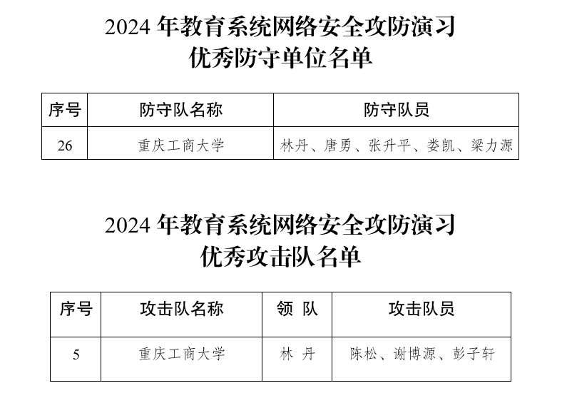 近日,重庆市教委举办了全市2024年教育系统网络安全攻防演习,本次演习有111支防守队伍、15支攻击队参与为期5天的实战演习,共评选出优秀防守单位28支、优秀攻击队11支。beat365组建了防守队伍和攻击队伍各1支参与演习,最终获评“优秀防守单位”和“优秀攻击队”。