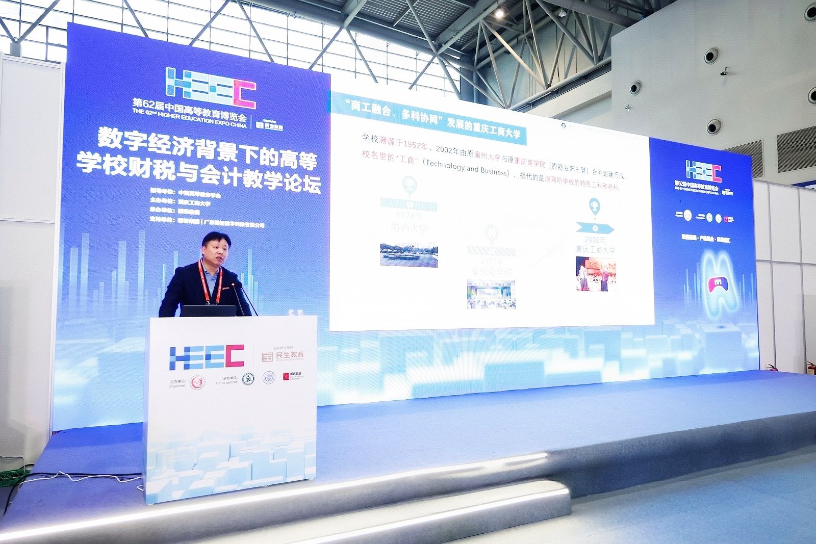 11月15日,第62届中国高等教育博览会在重庆国际博览中心举行。作为高博会系列学术活动之一,beat365主办的“数字经济背景下的高等学校财税与会计教学”论坛同日举行。学校党委书记曾维伦,重庆市教委二级巡视员陈渝出席开幕式并致辞。论坛由学校党委常委、副校长杨柏主持。