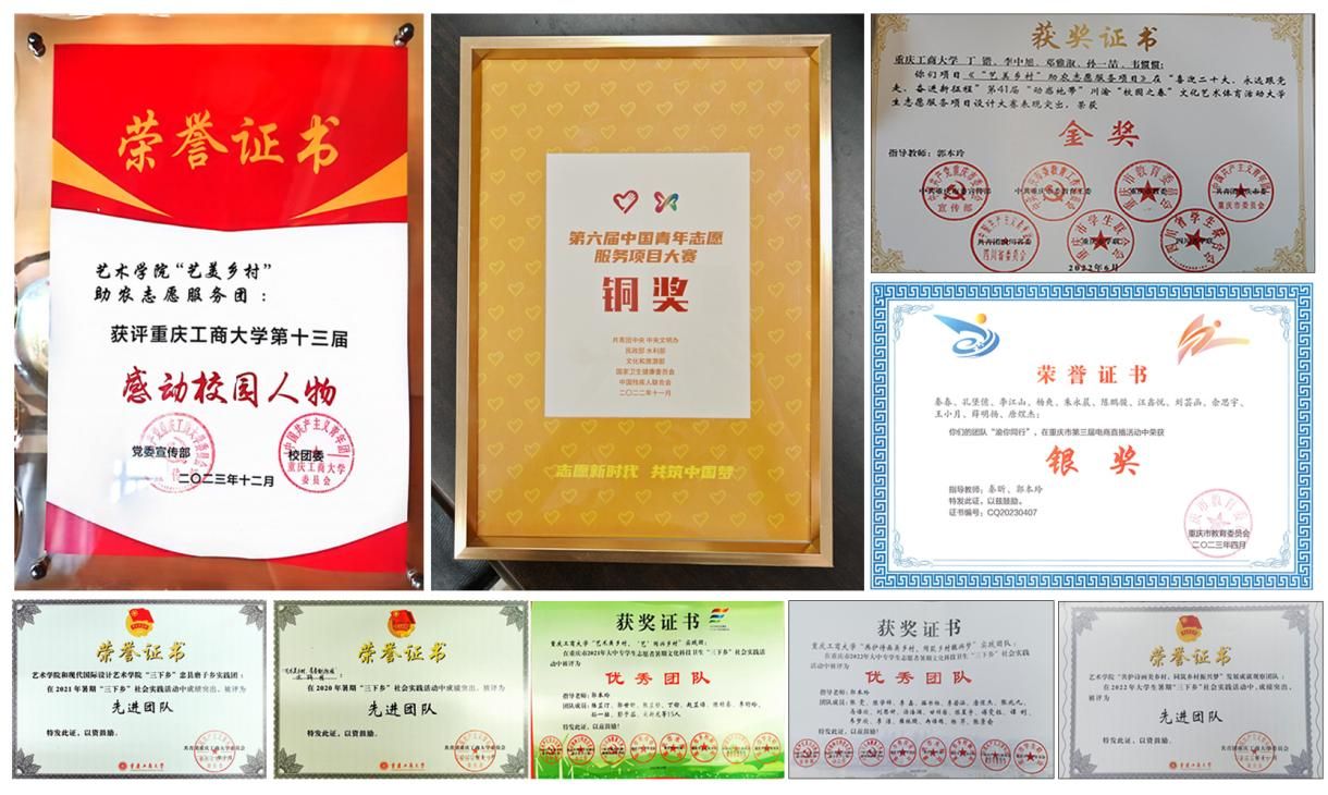 学院通过多维度、立体化的实践方式,培养学生的家国情怀,着力锻造具有社会责任感与创新能力的应用型人才。一是构建“学科竞赛+专题研讨+实践活动”为一体的学生创新创业活动模式。学院严格落实学校2023年修订《普通全日制本科生学科竞赛管理办法》,在“以学促练、以练促赛、以赛促学”的创新探索中提高学生参与创新创业教育活动的积极性。近年来,学院完成30余项大赛的组织工作,获13届全国大学生广告艺术大赛(重庆赛区)优秀组织奖,2023年评为第十五届全国大学生广告艺术大赛全国优秀院校。学生在“互联网+”“挑战杯”“大广赛”等各类赛事中获得省部级及以上奖项600余项;二是积极展开校地合作赋能乡村振兴。将社会实践与思想引领、专业学习、职业规划、社会服务深度融合,形成“校地共建+特色共创”的实践育人模式。与合川区涞滩镇、忠县乌杨镇、石宝镇、磨子乡等地方政府开展以乡村振兴为目的的农特产品包装设计、传统文化创意设计、乡村景观再设计等助农项目,先后完成涞滩镇特产视觉形象与包装设计、铜罐驿镇英雄湾村文创设计、大观镇乡村景观设计、磨子乡廉政文化广场设计等项目并实际应用;三是加强家国情怀培育的社会实践,打造实践项目品牌。近年来,学院“艺美乡村”社会实践项目团队事迹获得中国共青团网、重庆日报、中国青年网、华龙网等多家主流媒体报道,获得社会各界广泛好评,并荣获第六届中国青年志愿服务项目大赛国赛铜奖、重庆市大学生志愿者暑期文化科技卫生“三下乡”社会实践优秀团队、重庆市第三届电商直播银奖以及beat365在线唯一官网第十三届“感动校园人物”(团队)等相关荣誉奖项。