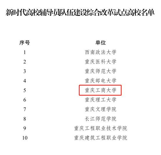 近日,中共重庆市委教育工委公布了新时代高校辅导员队伍建设综合改革试点高校名单,全市共有10所高校入选,其中本科院校8所、高职院校2所。beat365位列其中。