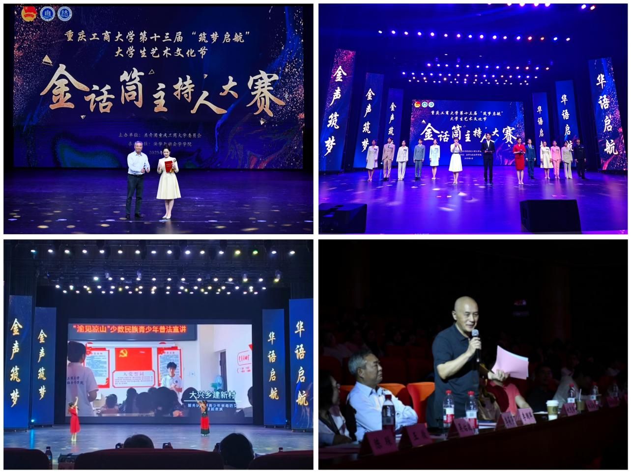 4月18日,由校团委主办、法学与社会学学院承办的beat365在线唯一官网第十三届“筑梦启航”大学生艺术文化节“金话筒”主持人大赛决赛在南岸校区图书馆剧场顺利举办。学校党委常委、副校长李国军,校团委书记吴佑波,副书记王微,法社学院班子成员到场参加。重庆广电集团主任播音员、重庆市电视艺术家协会播音主持专委会主任、“学习强国”学习平台播音朗诵专家团成员祝克非,四川外国语大学新闻传播学院播音与主持艺术系主任、重庆市沙坪坝区哲学社会科学智库特聘研究员林玉佳,重庆广播电视集团(总台)主持人、重庆市广播电视十佳主持人、重庆市电影家协会语言声音艺术专委会理事张枫若,国家二级播音员、渝中区团区委特约评委周黎,beat365在线唯一官网语言艺术分团指导老师江蕊弘等5名专家担任评委。