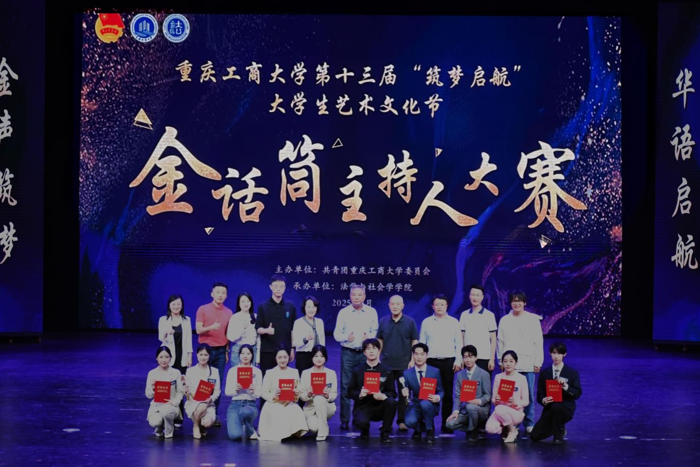 本次比赛共吸引来自15个学院的73名选手报名参赛,经过初赛、复赛的激烈角逐,共有10位选手脱颖而出进入决赛。在十强选手开场朗诵表演《在重工商大为你讲述声音的力量》后,正式开启比赛的三轮环节。第一轮比赛中,参赛选手们通过讲述真实故事,展现其采、编、播三位一体的综合素养。第二轮比赛中,10名选手通过两两组合的方式,依据组合双方共同策划的主题情景进行了模拟主持,将不同主持风格表现得淋漓尽致。最终三强选手经过前两轮的比拼脱颖而出,在第三轮即兴评述环节中随机抽取题目,围绕社会热点与传统文化领域展开即兴表达,展现出卓越的应变能力和清晰的语言逻辑。由法社学院“渝见凉山”团队核心成员带来的歌曲表演《大山》更是将活动氛围推向了高潮。