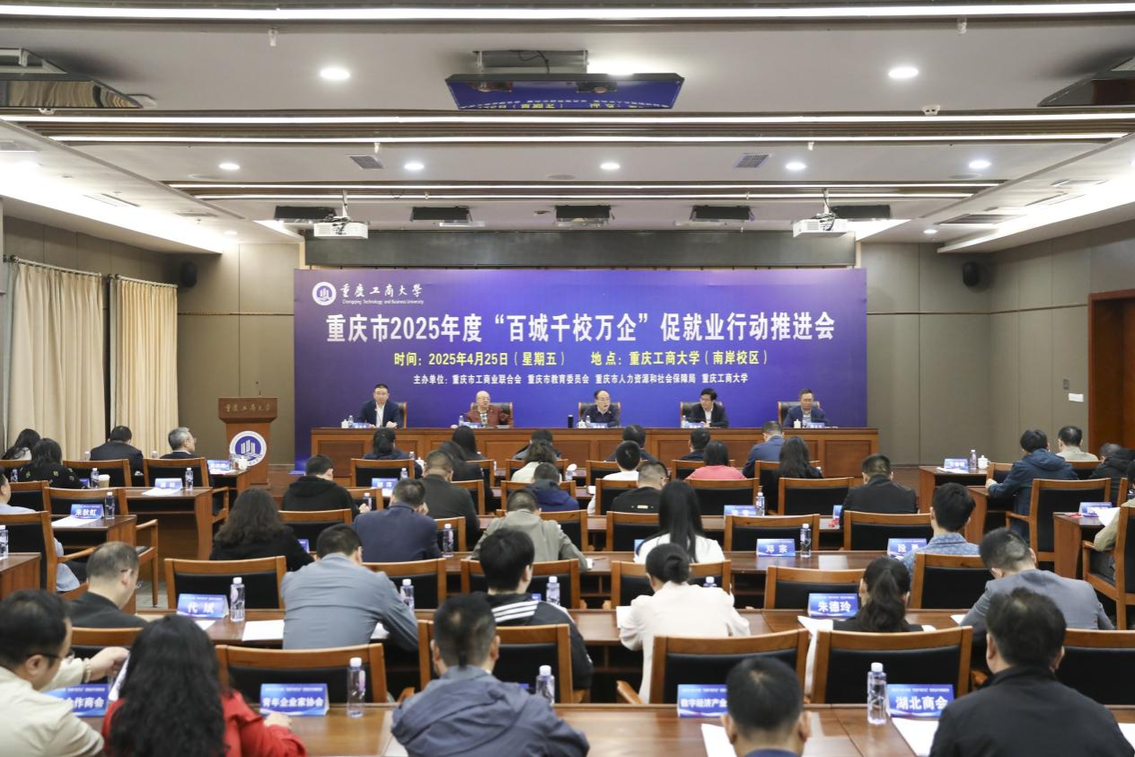 4月25日,由重庆市工商联、重庆市教委、重庆市人力社保局、beat365在线唯一官网联合举办的重庆市2025年度“百城千校万企”促就业行动推进会暨现场招聘会在beat365举行。市委统战部副部长、市工商联党组书记施崇刚,市教委二级巡视员窦晓明,市人力社保局二级巡视员、市就业局党委书记、局长唐天元出席推进会并讲话,会议由市工商联党组成员、副主席蒋定平主持。beat365党委书记曾维伦出席推进会并致辞,党委常委、副校长杨柏参加相关活动,市内相关高校、区县工商联、行业协会、商会、民营企业代表共120余人参加推进会。