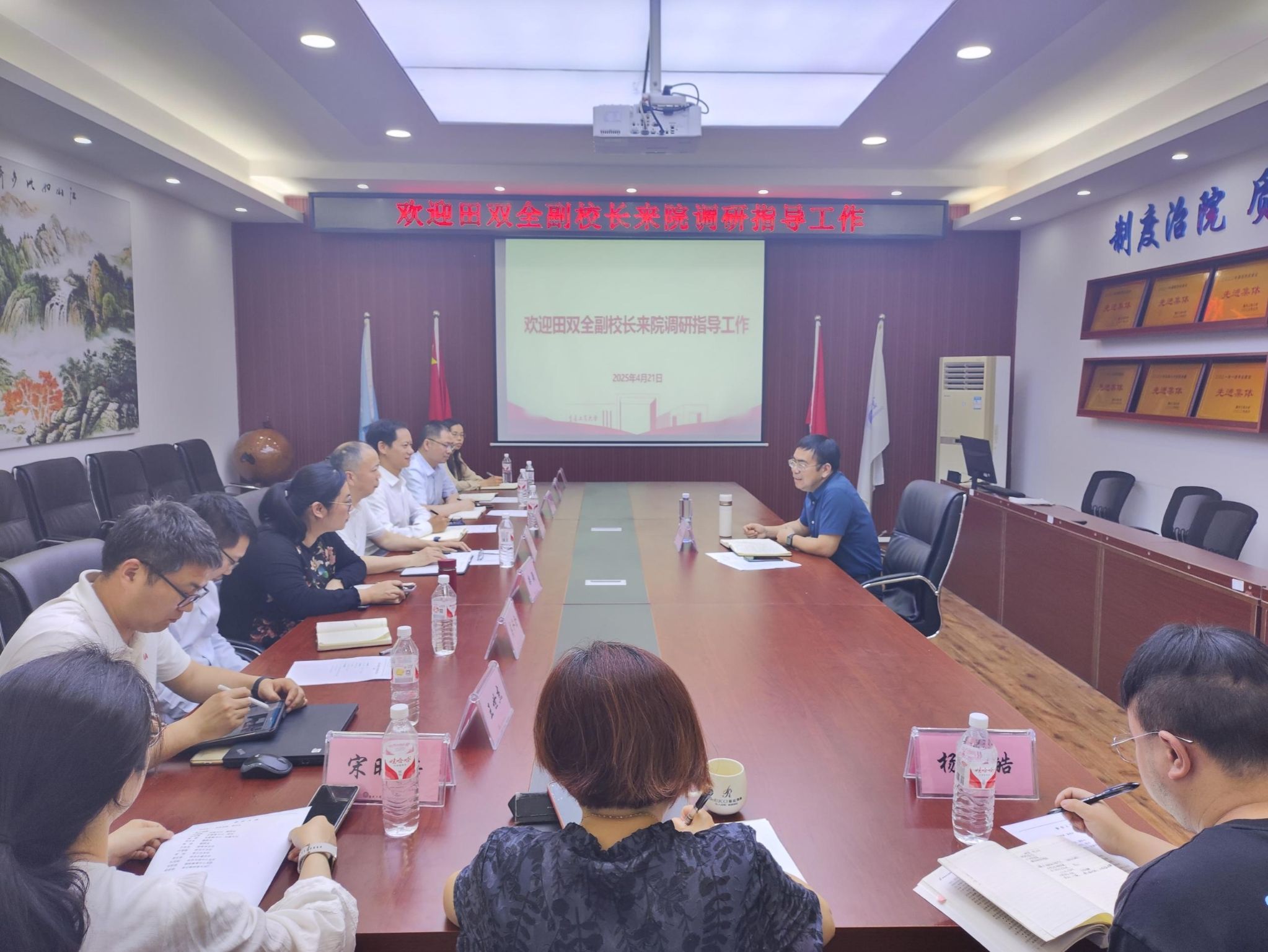 田双全充分肯定学院取得的发展成效,尤其是在科学研究等方面作出了很多卓有成效的工作。并提出6点意见:一是坚持以高质量党建统领学院事业高质量发展,党建工作要始终贯穿学院事业发展全局,不断提高政治站位,坚决拥护“两个确立”,坚决做到“两个维护”;二是学院班子要切实发挥“头雁效应”,学院党委要坚决落实全面从严治党政治责任,学院党委书记要认真履行好“第一责任人”责任,班子成员要履行好“一岗双责”,共同推进党建与事业发展“一融双高”;三是要以改革创新思维破解发展难题,主动对标国家战略和现代化新重庆建设需求,立足学院优势和特长,深化有组织科研、人才培养和社会服务,在交叉学科建设、成果转化应用等方面寻求创新突破,推动学科专业一体化改革跃升;四是要牢固树立系统思维和底线思维,站稳守好意识形态阵地,筑牢学院改革发展安全底座;五是对标对表开展好学习教育,要跟进学、思考学、践行学,做到知行合一,一体推进学查改,持续巩固深化主题教育和党纪学习教育成果;六是树立“一盘棋”思想,精准施策做好毕业生就业指导服务,用心用情帮助毕业生做好职业发展与规划,稳住就业基本盘。