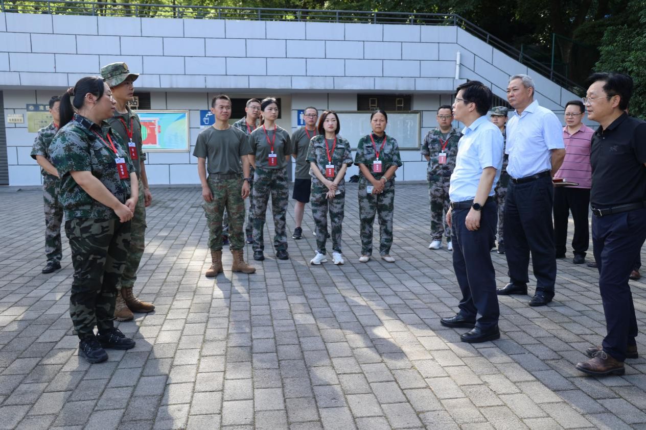 7月3日上午,学校党委书记曾维伦,党委常委、副校长李国军带队前往南岸校区军训现场,看望并慰问军训师生和承训教官。