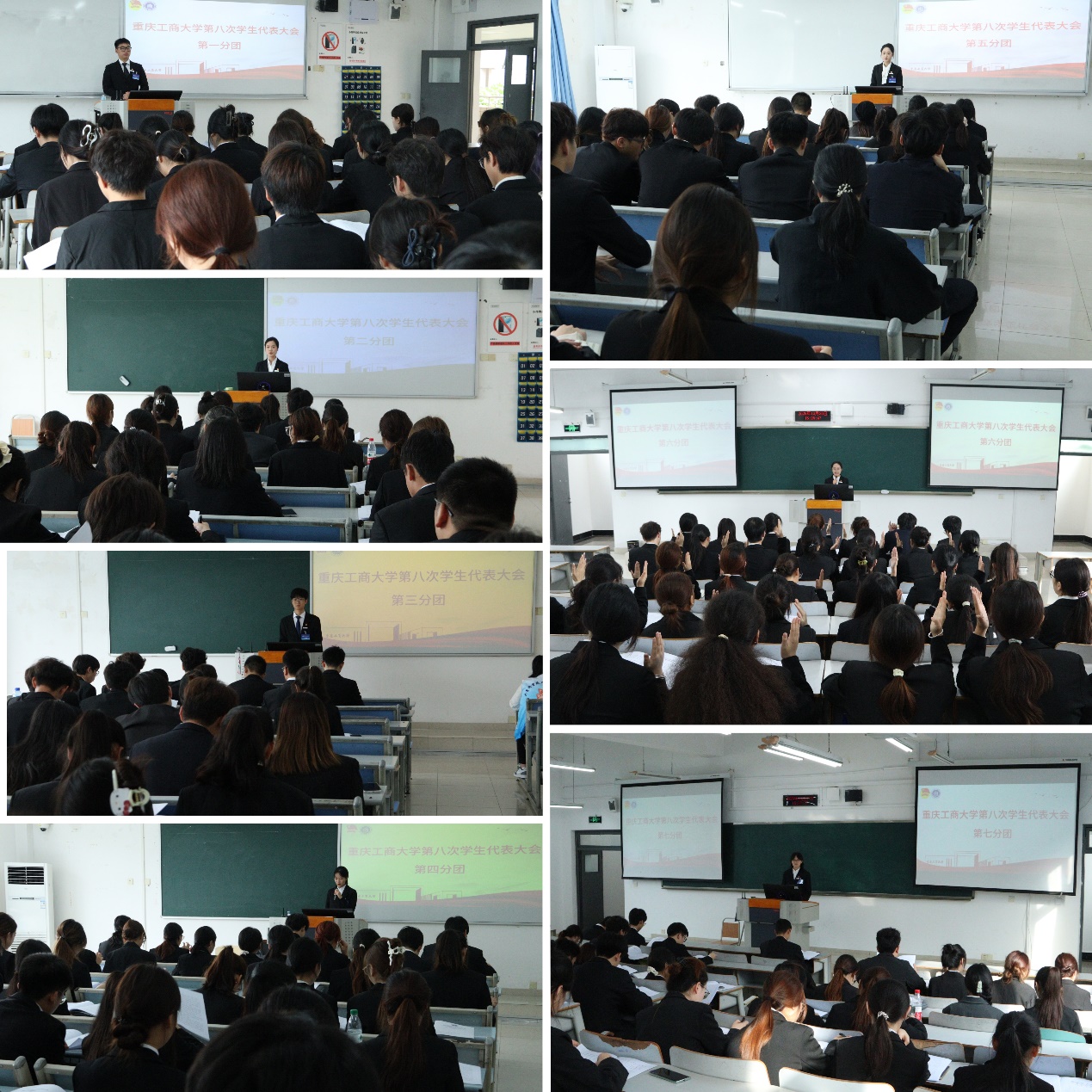 第一次全体会议结束后,学代会七个代表团分别召开分团会议,审议《beat365在线唯一官网第七届学生委员会工作报告》及《关于beat365在线唯一官网第七届学生委员会工作报告的决议(草案)》,讨论大会选举办法(草案),对《beat365在线唯一官网进一步深化学生会组织改革试点实施方案》征求意见,并通过beat365在线唯一官网学生会新一届主席团候选人名单及学代会常设机构常任代表候选人名单。随后,学代会主席团会议在南岸校区博智楼7113教室召开。会议通过了《beat365在线唯一官网第七次学生代表大会选举办法(草案)》、大会监票员建议名单、学生会新一届主席团候选人名单及学代会常设机构常任代表候选人名单。