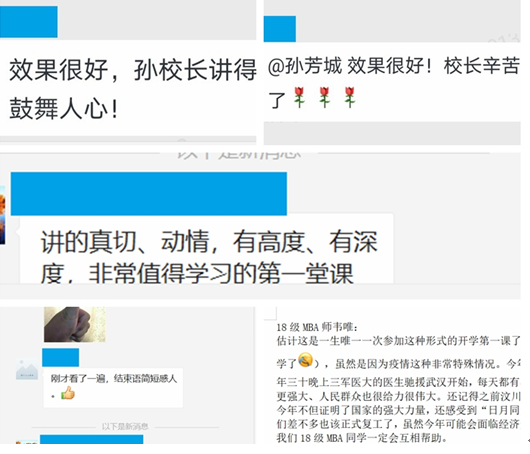 孙校长的“开学第一课”,引起了广大师生的热议。大家纷纷表示受到了激励和鼓舞,坚定了战胜疫情的信心和决心。同时,大家还通过网络留言、编发微信朋友圈、QQ群留言等形式表达了学习体会和感悟。
